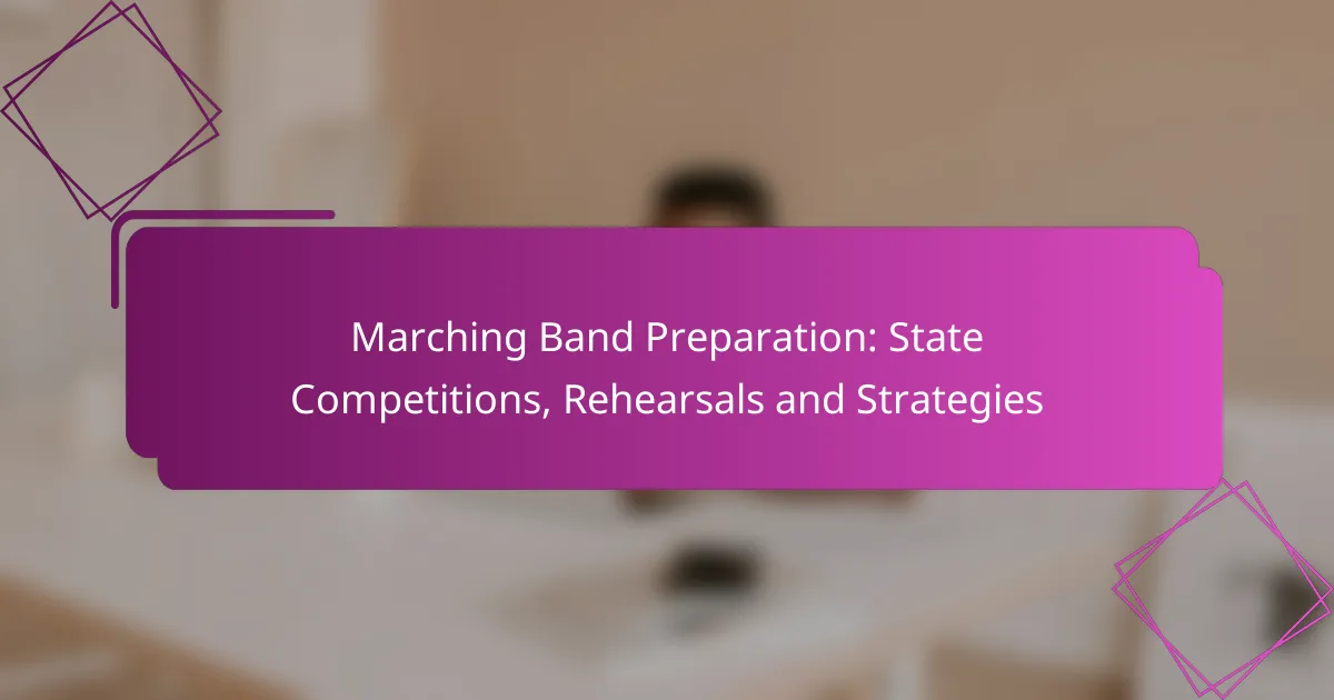 Preparing for state competitions in marching band requires a systematic approach that prioritizes rehearsals, mastery of music and drill, and constructive feedback. By implementing effective strategies such as focused sectional practices and video analysis, bands can enhance individual skills and foster teamwork, ultimately leading to a polished and engaging performance on competition day.
