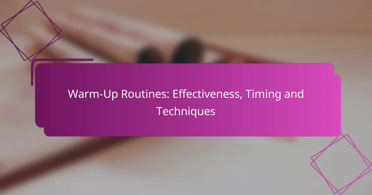Warm-up routines are essential for athletes, as they effectively prepare the body for physical activity by increasing blood flow, enhancing flexibility, and minimizing injury risk. A well-structured warm-up incorporates dynamic stretching, sport-specific drills, and mobility exercises, while the timing of these activities significantly impacts their effectiveness. By utilizing various techniques, such as active warm-ups and resistance bands, athletes can further enhance their performance and safety during physical exertion.